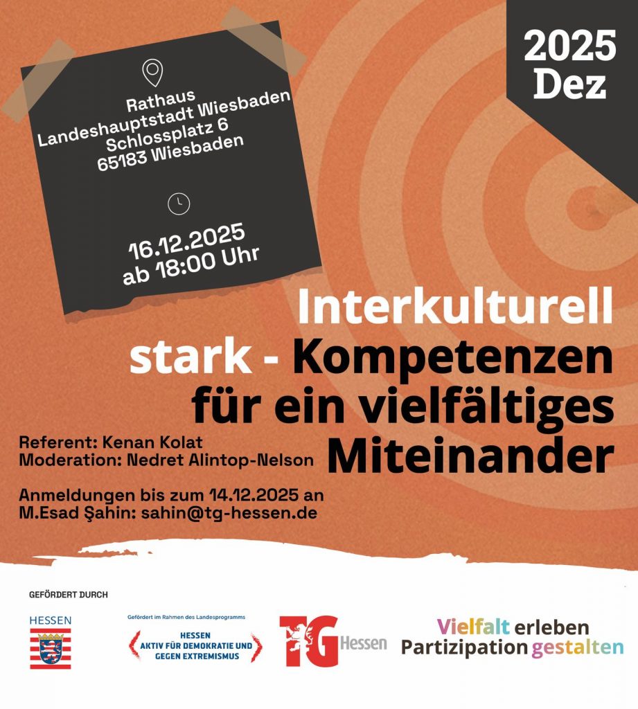 ✍️ Anmeldung: Damit wir besser planen können, bitten wir um eine Anmeldung bis zum 14.12.2025 per E-Mail an M. Esad Şahin: sahin@tg-hessen.de